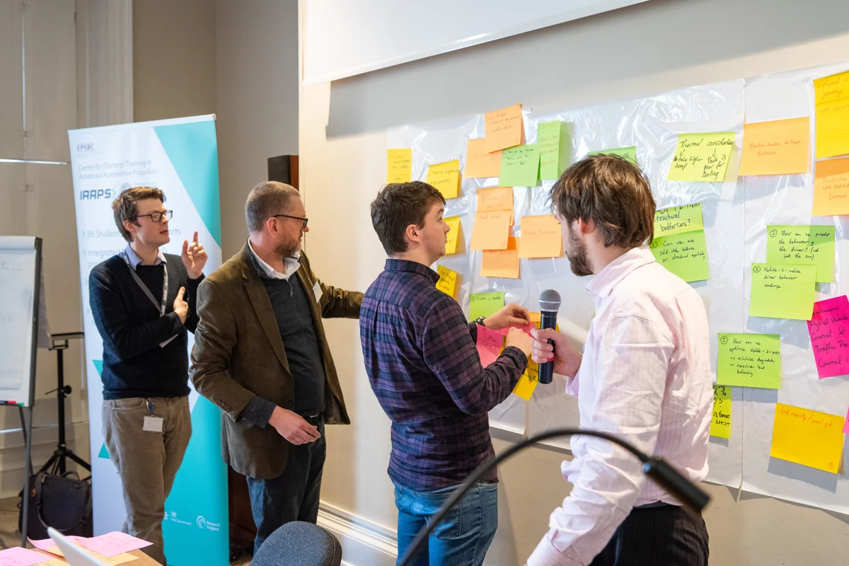 The first day featured a series of presentations from the AVL representatives where they described their high-level challenges, a key priority was to ensure all participants fully understood the challenges that we would be working on for the rest of the week. After the presentations, the participants were put into some pre-defined teams, where we were encouraged to discuss, conduct surface research and consider prototypes with the aim of generating a potential avenue for further discussions. Each team was then invited to present their key discussion points back to the rest of the participants, in the form of sticky notes.