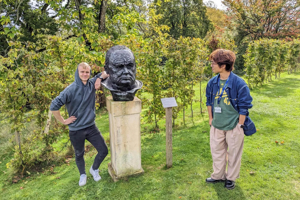 On the day, the competition was held at the American Museum. Arriving at about 09:30 in the morning, the rain was torrential so we quickly dived for cover into the main room, but by lunchtime it was easing off and during a brief pause in the rain, we went for a walk around the grounds to get some fresh air and admire the gardens. (Indrek and Yuqiang on the right, enjoying a rest at the bust of Winston Churchill) It is a very nice place to visit in Bath as you can see from the pictures below and only a few minutes’ walk from campus.